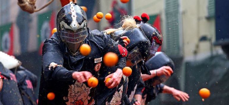 Исторический карнавал в Ивреа знаменит «Битвой апельсинов», когда команды горожан на улицах старого центра сражаются с «армией» на украшенных повозках, забрасывая друг друга фруктами. Зрители наблюдают столкновения с безопасной зоны, наслаждаются средневековыми инсценировками, парадами и местными блюдами.